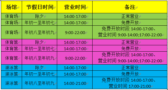 主题 : 龙岗区大运体育中心春节免费开放时间表(游泳)